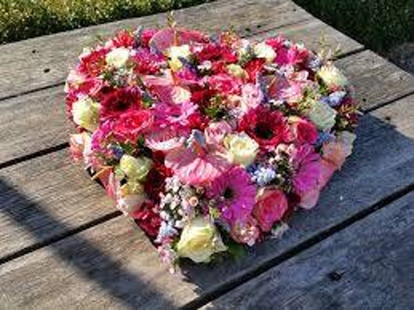 De rozen en de hartjesvorm geven de reflectie weer van de eeuwige liefde die u koestert voor de overledene.